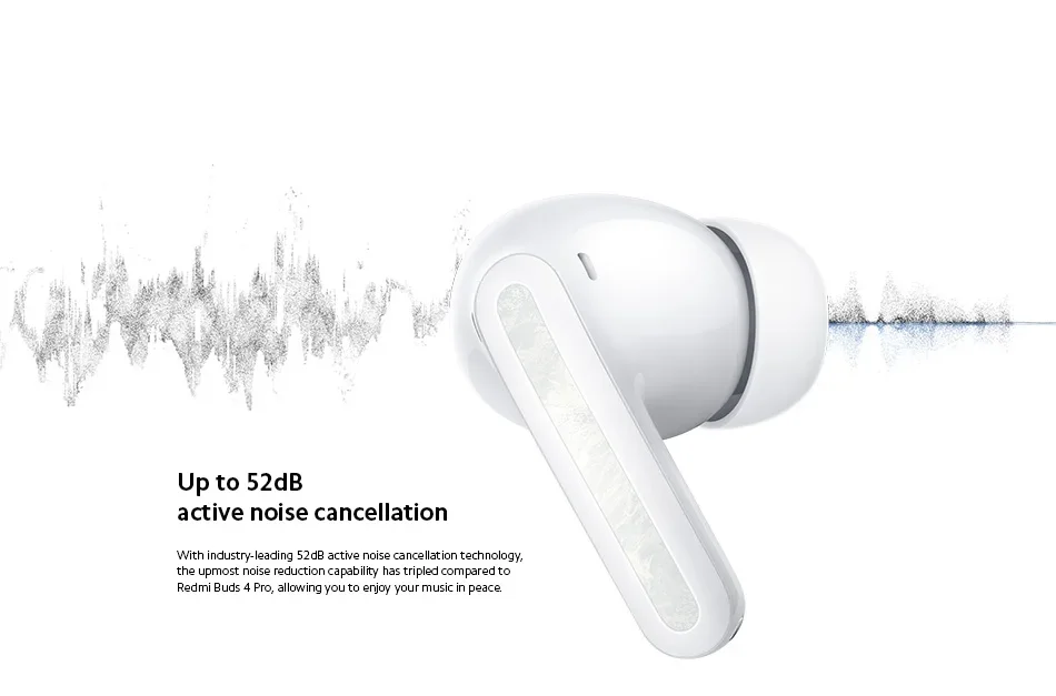 Experience pristine audio with 52dB active noise cancellation, ensuring a silent listening experience.
